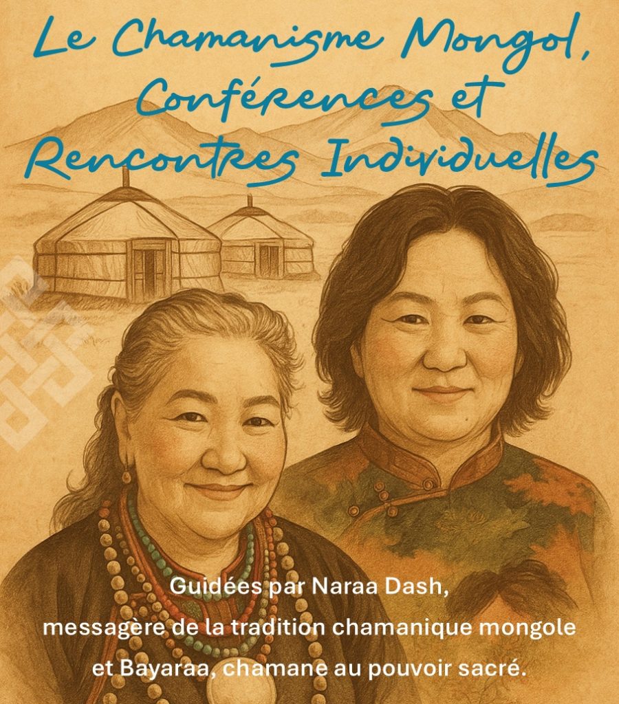 Depuis plus de dix ans, Naraa Dash nous partage des activités culturelles et spirituelles inspirées du chamanisme mongol. Ces expériences débutent souvent par une conférence de découverte, puis se prolongent par des rencontres individuelles guidées par les esprits alliés des chamans.